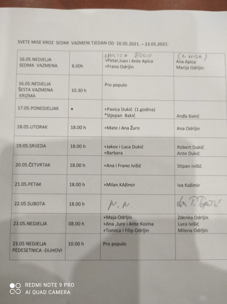 Ispovijed za krizmanike, kumove i roditelje je u subotu, 15.05.2021. u 09:00 sati, te nakon ispovjedi je susret župnika-krizmatelja sa krizmanicima i kumovima. Obavezno je ponijeti prijavnice za krizmu koje su krizmanici dobili prije dva tjedna radi korekcije i ispravaka podataka ukoliko ih ima.